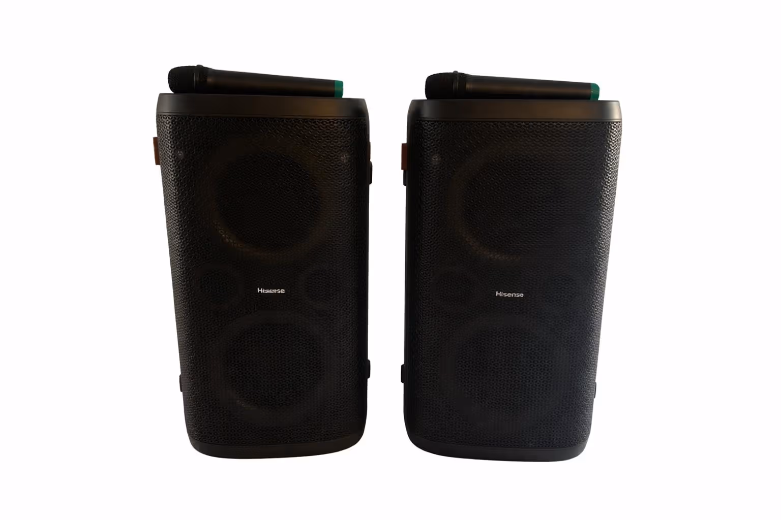 Wir haben zwei identische Party-Lautsprecher zur Miete, die sich miteinander koppeln lassen – ideal für größere Räume oder eine breitere Beschallung.